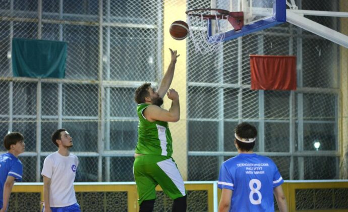 Во Дворце спорта Лесного продолжается чемпионат города по баскетболу среди мужских команд.