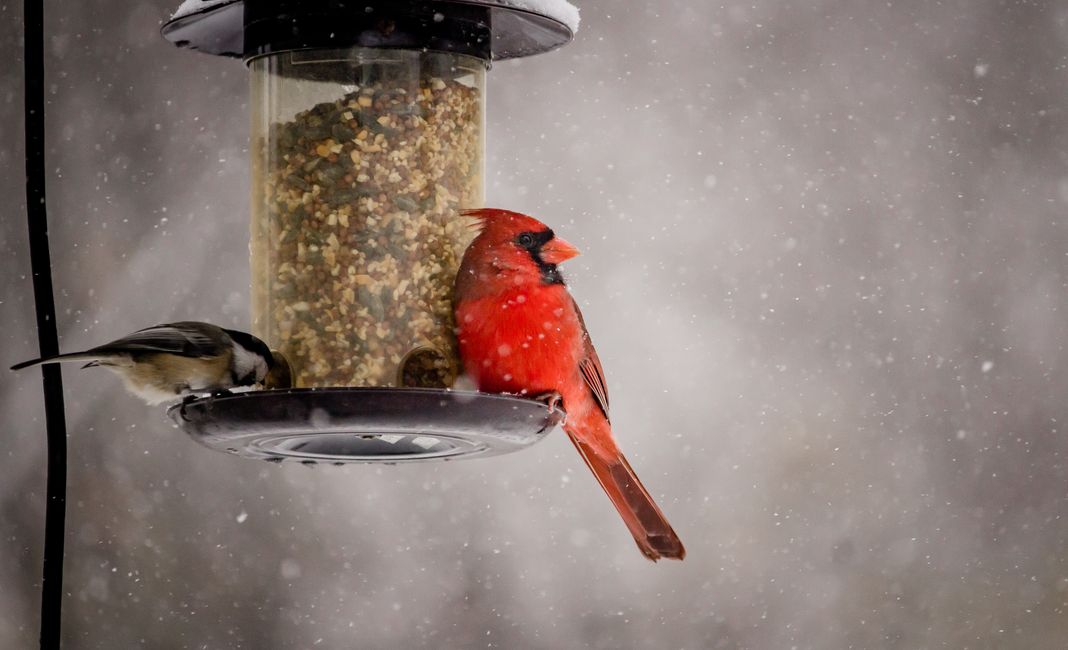 Beautiful shot of a cute northern cardinal bird on a winter day