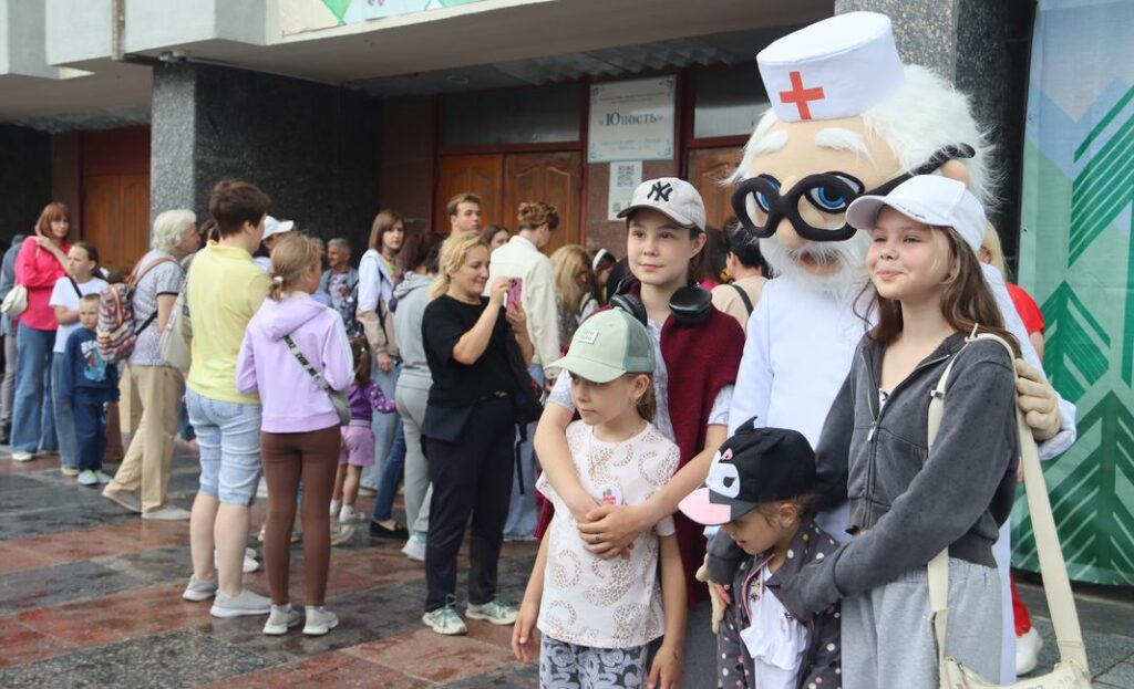 Двухметровый Мойдодыр встречает гостей на площади у Дома творчества «Юность». Вприпрыжку за ростовой куклой бегут малыши, торопятся взрослые. Одним из ярких событий праздничной программы Дня молодёжи стал фестиваль «Лесной – территория здоровья и добра».