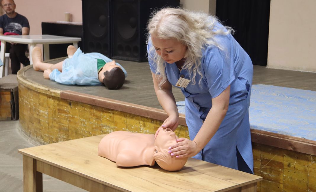 Особенностью фестиваля стали краткие лекции на важные темы с демонстрацией практических навыков. Слушатели активно участвуют, задают медикам вопросы и даже отрабатывают на манекене основы сердечно- лёгочной реанимации. Не исключено, что знания базовых приёмов однажды помогут спасти кому-нибудь жизнь. Женскому здоровью как залогу счастливого материнства посвящена лекция врача-акушера-гинеколога.