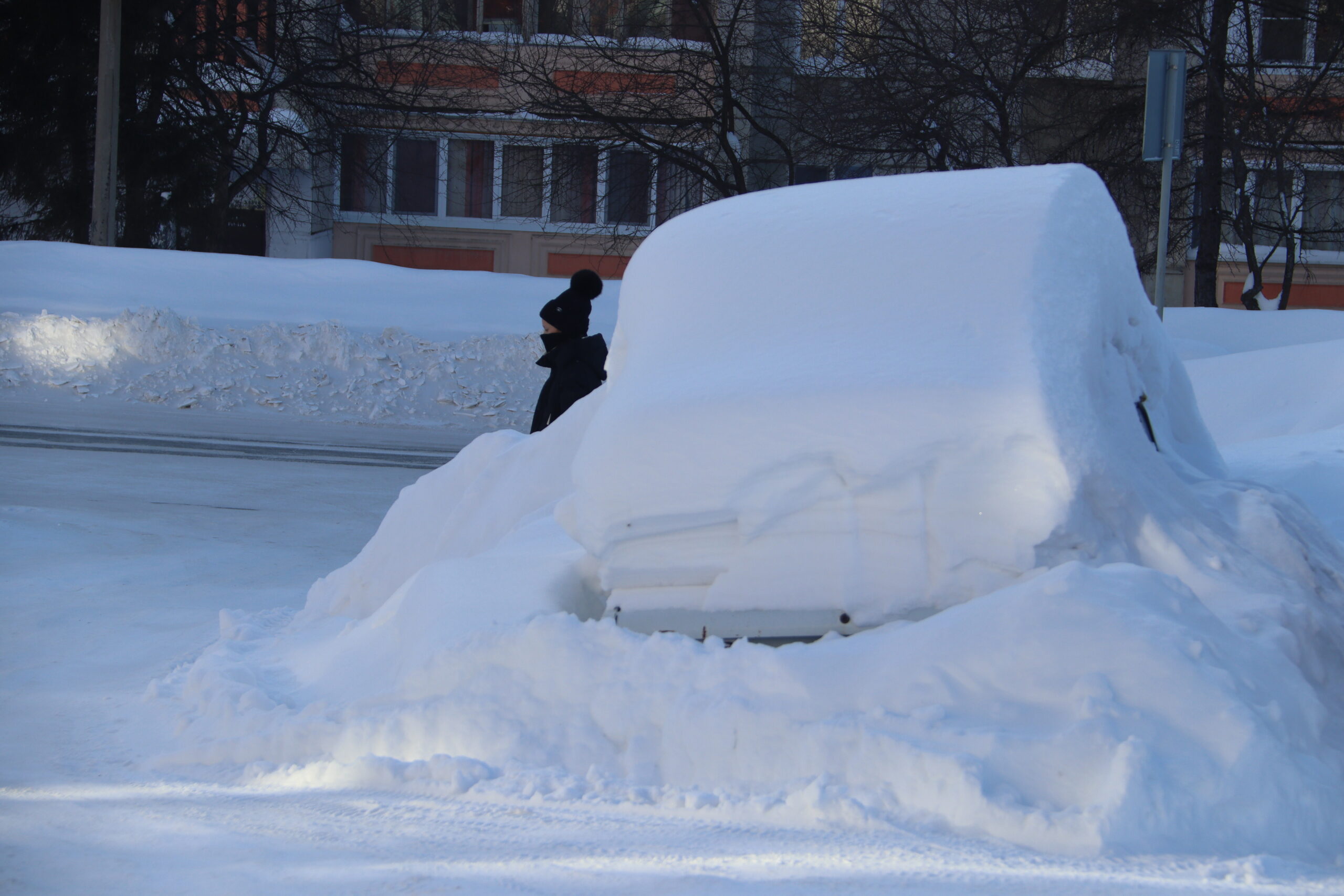 Нельзя выходить на дорогу из-за стоящих машин или иных препятствий, например, высоких сугробов, ограничивающих обзор, не убедившись в отсутствии транспорта.