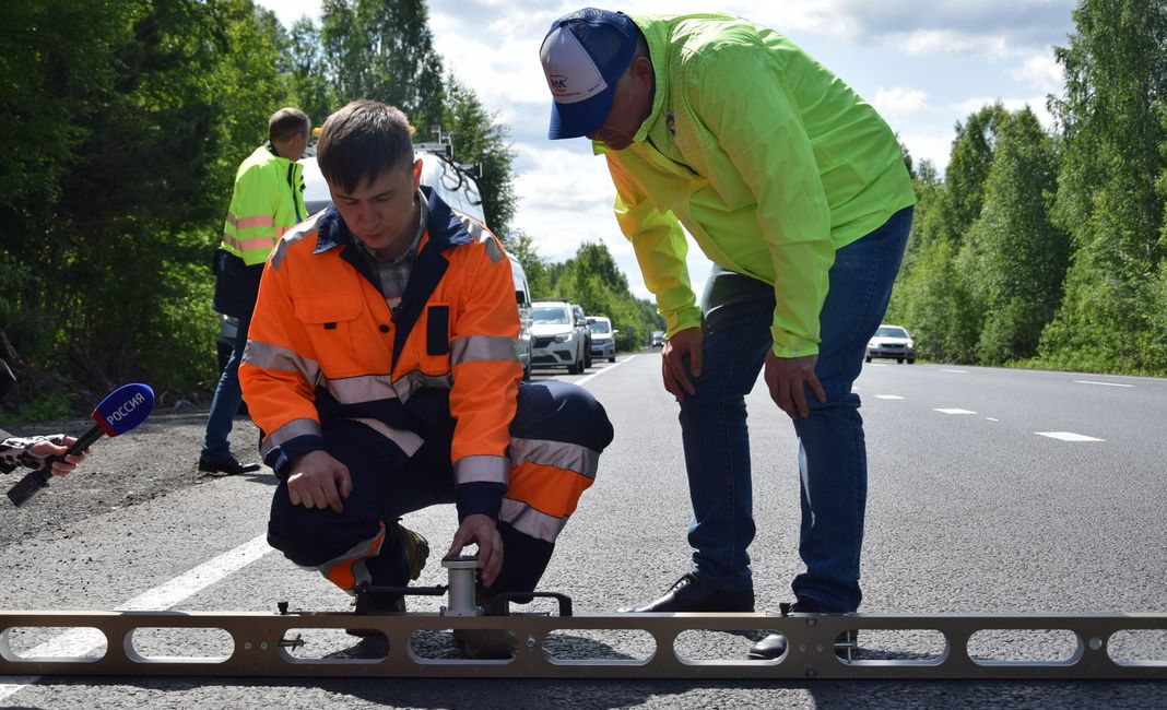 «Интенсивность сегодня – 28 ты- сяч автомобилей в день. Ну, представляете, да, сколько проходит автомобилей и какая нагрузка идёт на дорожное покрытие. Вот за счёт свойств этого асфальтобетона подрядчик гарантирует отсутствие колейности и качество дороги в течение шести лет», – говорит руководитель проекта «Безопасные дороги» Виталий Крупин.