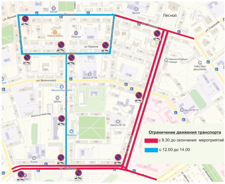 Где и на какое время будут перекрыты дороги Лесного 9 мая?