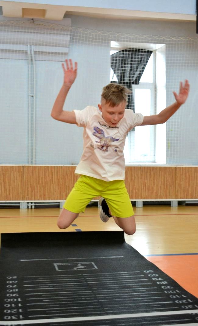 Для 1-й возрастной группы (дети 6-7 лет) испытания включали в себя бросок набивного мяча 1 кг, наклон, прыжок в длину, подъём туловища из положения лёжа на спине за 30 сек.