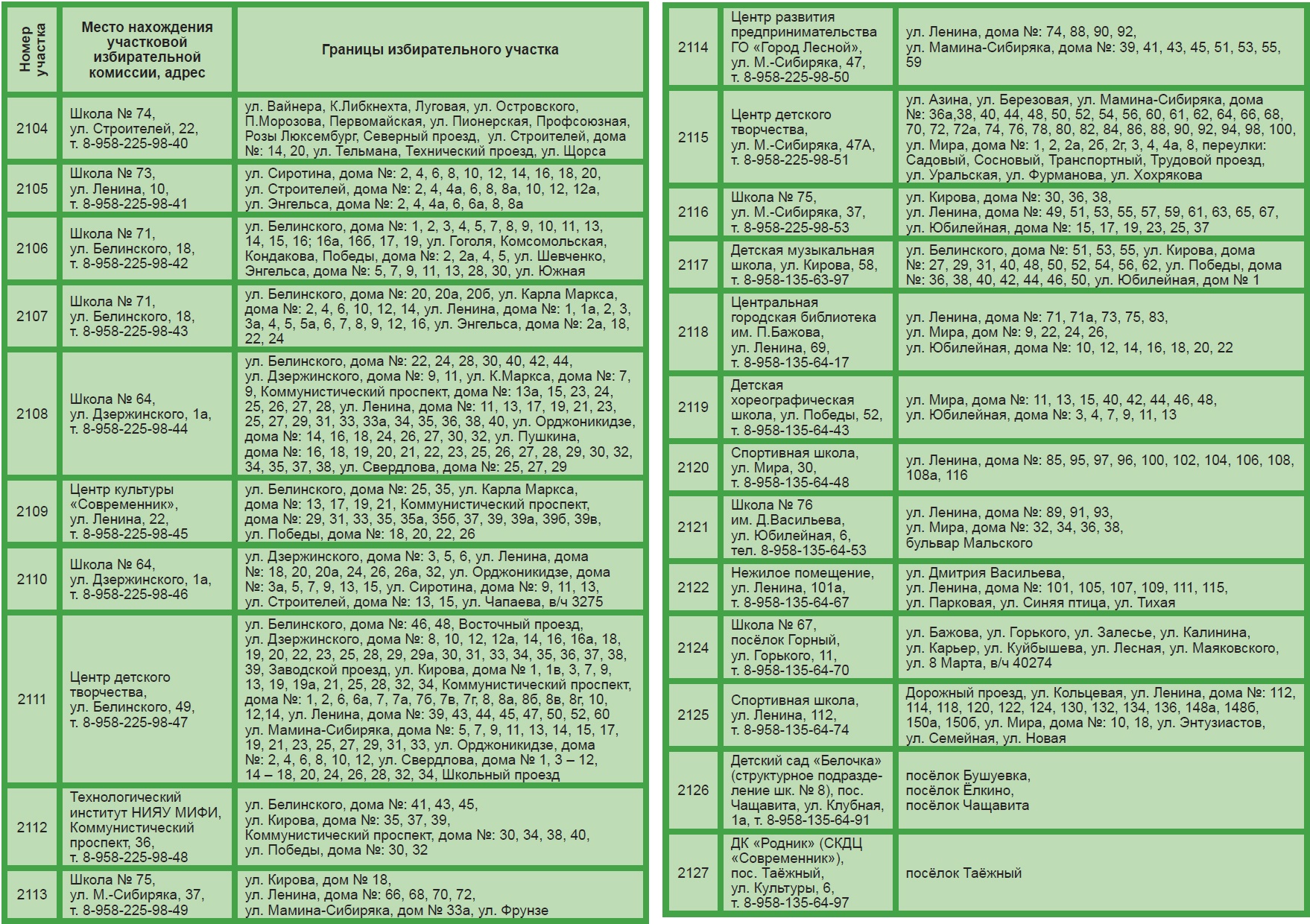 СПИСОК ИЗБИРАТЕЛЬНЫХ УЧАСТКОВ С УКАЗАНИЕМ ИХ ГРАНИЦ, ТЕЛЕФОННЫХ НОМЕРОВ, МЕСТ НАХОЖДЕНИЯ УЧАСТКОВЫХ ИЗБИРАТЕЛЬНЫХ КОМИССИЙ И ПОМЕЩЕНИЙ ДЛЯ ГОЛОСОВАНИЯ