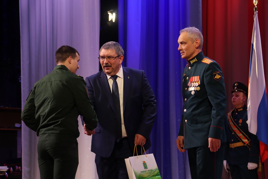Торжественное собрание завершилось ярким концертом. Песни и танцы в исполнении творческих коллективов города и военнослужащих наполнили зал безмерной гордостью за тех, кто стоит на защите страны.