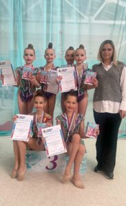 В групповых упражнениях команды «Росинка» (Юлиана Хафизова, Елизавета Жукова, Аксинья Коновалова, Юлия Софронова, Милана Тимирова) и «Брусника» (Милена Александрова, Дарья Харченко, Татьяна Петрова, Валерия Белавина, Анна Струнина, Алина Галлямова) тренера Л.Латышевой стали победителями соревнований.
