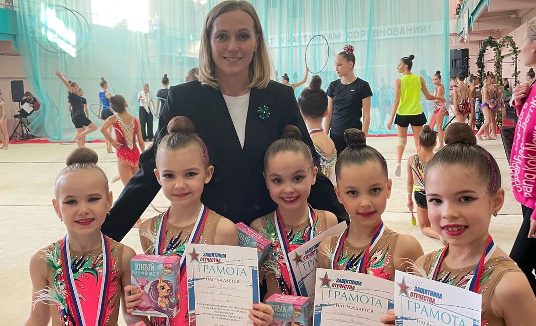 В групповых упражнениях команды «Росинка» (Юлиана Хафизова, Елизавета Жукова, Аксинья Коновалова, Юлия Софронова, Милана Тимирова) и «Брусника» (Милена Александрова, Дарья Харченко, Татьяна Петрова, Валерия Белавина, Анна Струнина, Алина Галлямова) тренера Л.Латышевой стали победителями соревнований.