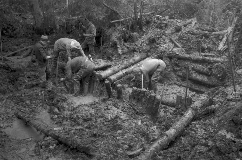 Наступать было некем и нечем, но наши войска отогнали врага, перерезали железную дорогу Чудово – Новгород, здесь и закрепились. Минировали нейтральную зону. Окопы копать нельзя – болото, вода. День и ночь строили блиндажи из брёвен, которые таскали на себе, делали завал по фронту два метра в высоту и метр в ширину, по бокам забор из жердей, в середине земля. Пуля не пробьёт, и нас не видно.