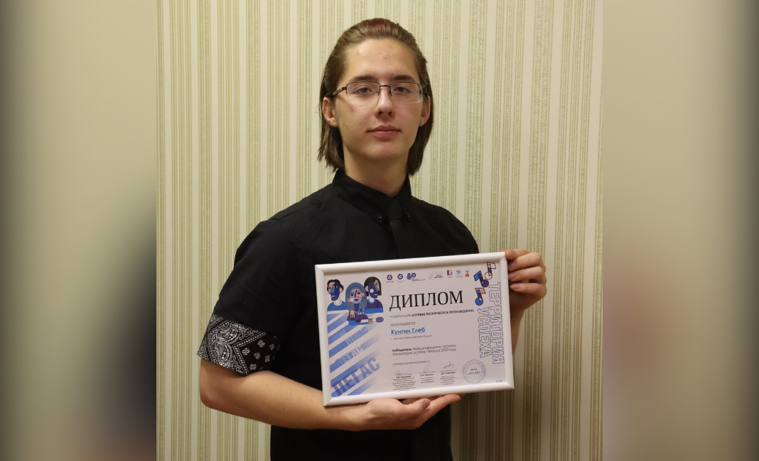 Многим лесничанам имя Глеба Кунгина знакомо по городскому конкурсу «А теперь слово пацанам». В 2024 году самый юный участник конкурса талантов стал победителем, покорив жюри и зрителей своей рассудительностью и глубиной поэтических образов. Но успех не вскружил школьнику голову. Надо сказать, награды и титулы Глеб принимает спокойно – без пафоса и честолюбия. Вот и статуэтку с гравировкой победителя проекта «Территория успеха: Пегас», которую недавно привёз из Москвы, не сумел сберечь, и теперь стеклянная плакетка со сколом в правом верхнем углу существует в единственном экземпляре.