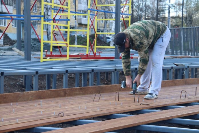 В планах подрядной организации – приступить к бетонированию оснований сцены и площадок, продолжить возведение пешеходных дорожек.