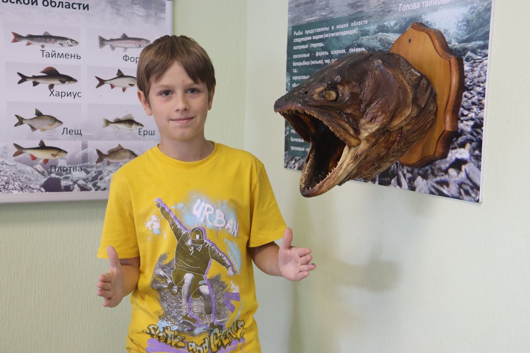 Роман Свиридов к музейному распорядку давно привык – вместе с младшими братом и сестрой ходит сюда уже третью смену. Говорит, очень нравятся весёлые разминки и камни в зале геологии. Для десятилетнего любознайки музей – это кладовая истории, а чучело тайменя на стене – прекрасный повод поделиться собственными знаниями. «Меня дедушка научил рыбачить, и однажды я поймал вот такого щурёнка, – рассказывает ребятам Рома. – А вообще щука – это опасная рыба, надо осторожно чистить, чтобы не пораниться, потому что у неё шипы на жабрах».