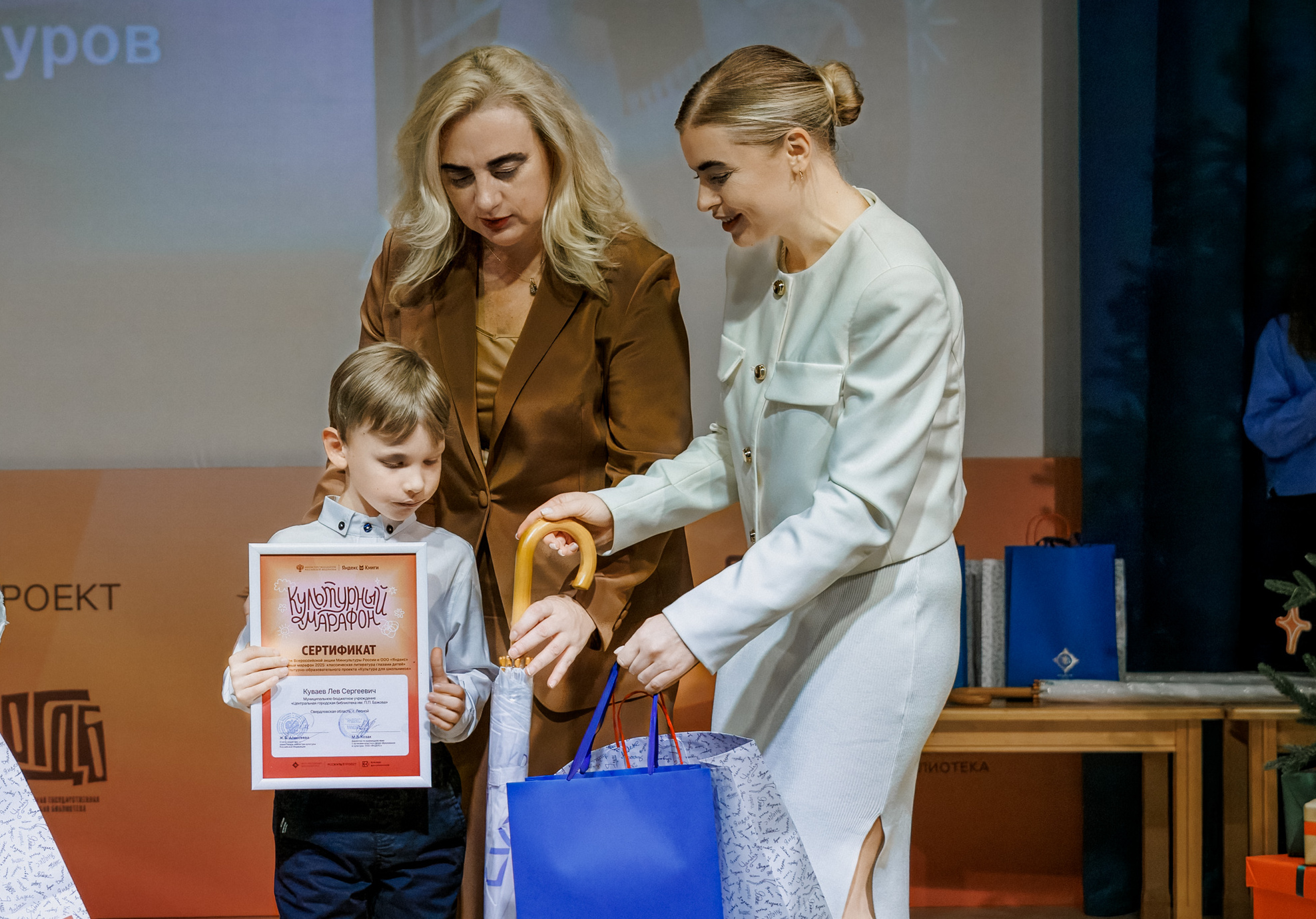 Торжественная церемония награждения победителей конкурса прошла в Москве, в стенах Российской государственной детской библиотеки. Заместитель Министра культуры Российской Федерации Жанна Алексеева тепло поздравила ребят, отметив не только оригинальность и глубину работ, но и свежий, новаторский взгляд. «Уверена, культурный марафон стал хорошей возможностью по-новому взглянуть на классику, которую часто в школе считают скучной. Акция удалась. И вместе нам удалось сделать главное – вовлечь школьников в осознанное чтение и творчество», – подчеркнула Жанна Алексеева.