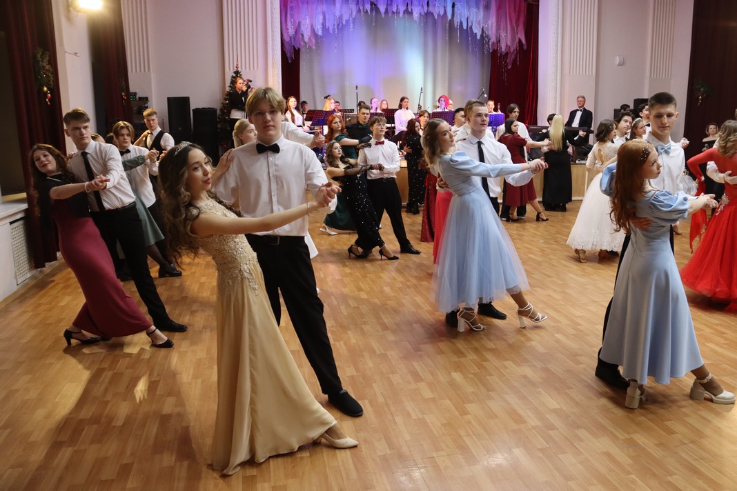 Двадцать семь пар юношей и девушек порхали по залу, словно бабочки – нежно, просто воздушно! Под аккомпанемент эстрадного оркестра «Глория» под управлением Сергея Шалимова они исполняли задорную польку, кружились в испанском и фигурном вальсах. Трудно поверить, что подростки репетировали под руководством хореографов студии «Три Т» Ирины Булатовой и Светланы Марининой всего трижды – настолько отточенными, грациозными и чёткими были их движения! А вот весёлую кадриль и свободные композиции старшеклассники танцевали уже с директорами школ.
