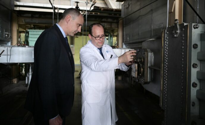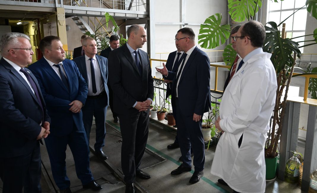 По завершении торжественного мероприятия в Учебно-выставочном центре делегация отправилась в цех по производству изотопов, где начальник цеха Дмитрий Ашин продемонстрировал новые разработки, включая сепаратор высоковакуумной откачки. На состоявшемся в цехе рабочем совещании обсудили расширение предлагаемой потребителям продукции, ввод в эксплуатацию системы электропитания на современной элементной базе, перспективы внедрения искусственного интеллекта и автоматизацию управления ионными потоками. Денис Паслер отметил высокую важность работы первого цеха в общей картине ядерной медицины страны.