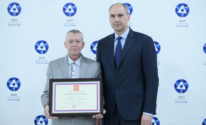 В Учебно-выставочном центре комбината, где собрались руководители города, градообразующего предприятия, депутаты Лесного, представители городских учреждений, силовых структур, общественных организаций, глава региона Денис Паслер и первый заместитель генерального директора Госкорпорации «Росатом», директор Дирекции ЯОК Олег Шубин приняли участие в торжественном мероприятии, посвящённом Дню города и комбината в рамках 80-летия атомной отрасли России, вручив правительственные и отраслевые награды сотрудникам градообразующего предприятия.