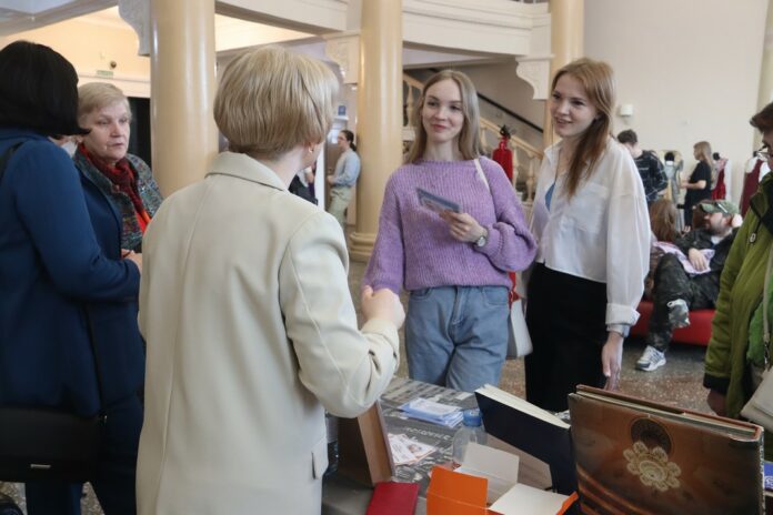 Давние друзья кинотеатра «Ретро», волонтёры объединения «Открытые сердца», по традиции помогают организаторам. Правда, узнать добровольцев получается не сразу – вместо привычных футболок с логотипами на них красивые вечерние платья. Объясняют: «Так ведь Ночь театра! Мы решили, что наряд должен быть соответствующим».
