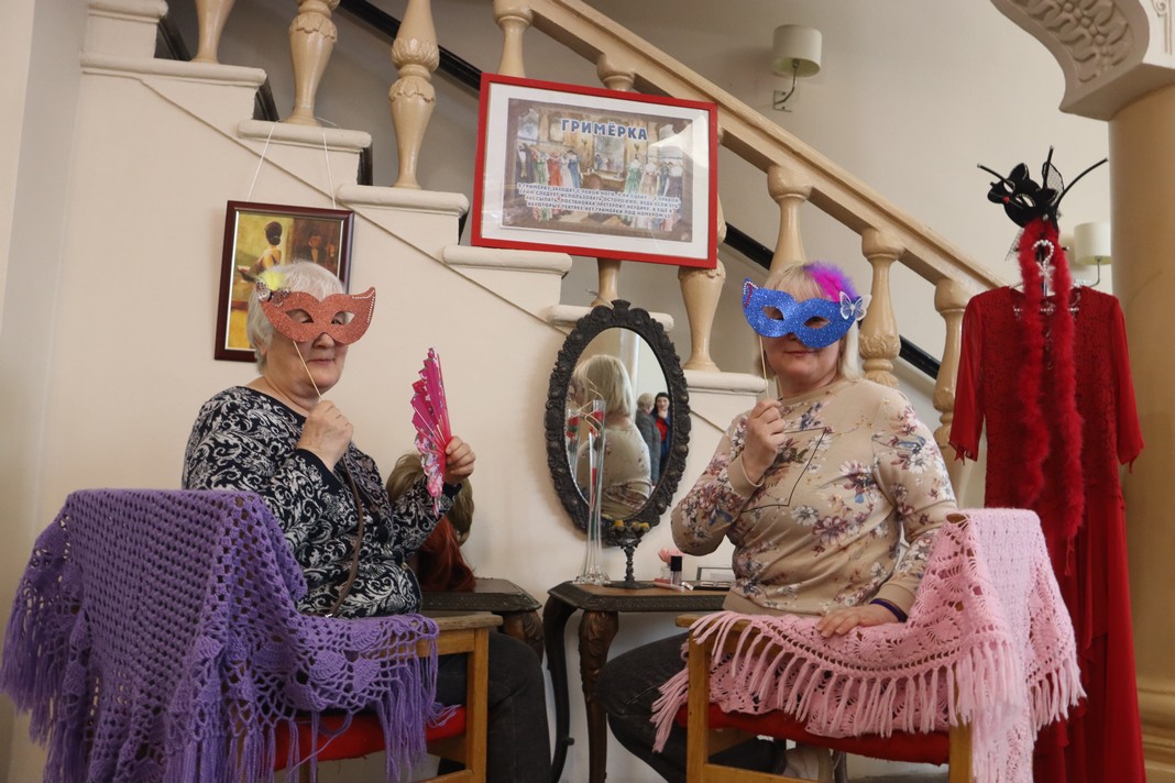Уже на входе в особую атмосферу посетителей погружают выставка художественных работ воспитанников Детской школы искусств и импровизированная гримёрка с париками, гримом и большим зеркалом. Трогать, примерять и фотографироваться – можно.