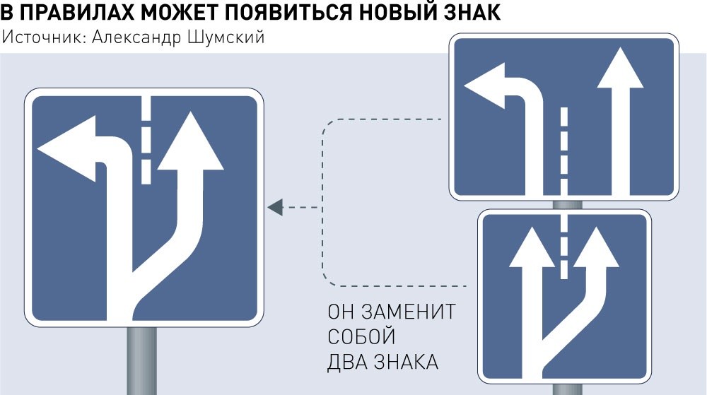 Предлагается заменить знак «Начало полосы» на новый, который сразу информировал бы водителей о том, куда они смогут попасть, двигаясь по данной полосе. Такой знак будет полезен как для автомобилистов, так и для дорожных служб. Последним не придётся устанавливать дополнительные знаки, что упростит дорожную инфраструктуру.