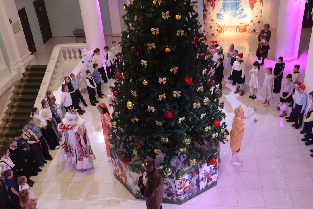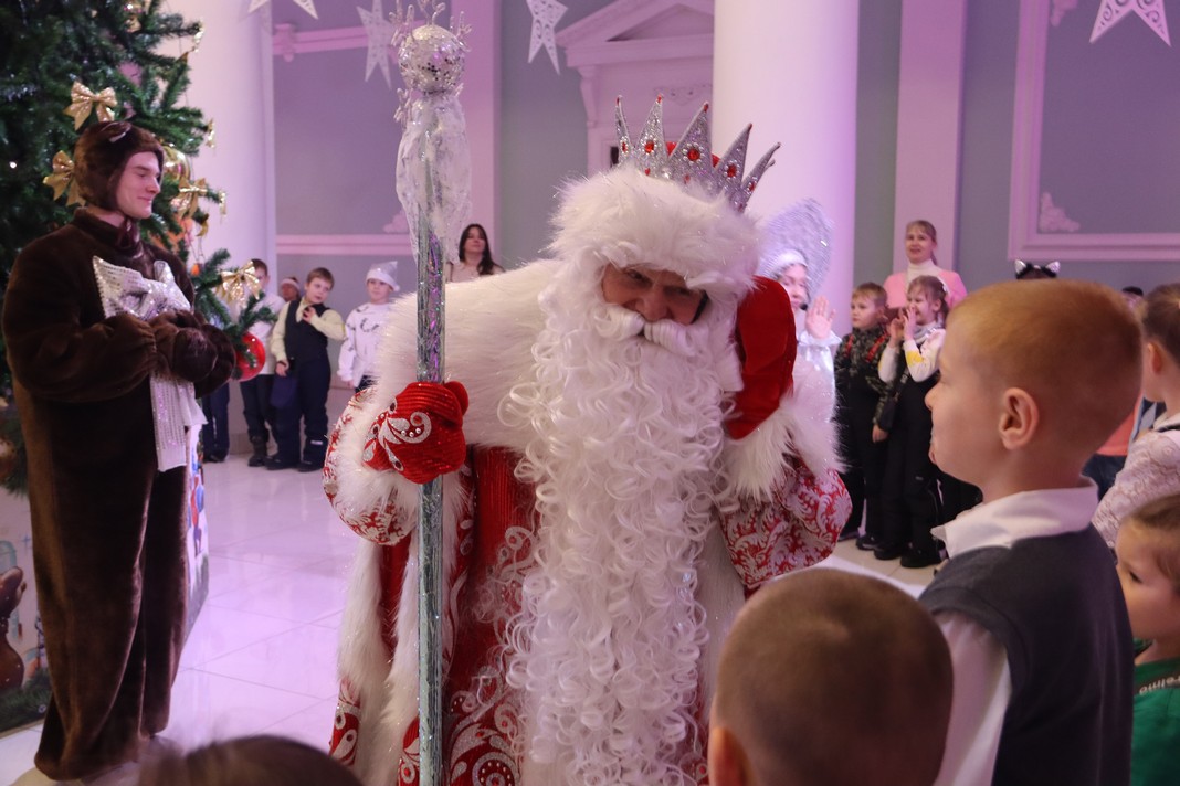И только Дед Мороз (Анатолий Пилигримов) со Снегурочкой (Ирина Потапова) остались прежними. Хотя, нет, главные волшебники стали ещё красивее! В этом сезоне у них появились новые, сшитые по индивидуальным меркам, костюмы. Сказочные и блестящие, хозяева праздника встречают после спектакля ребят у ёлки. Кажется, Деду Морозу обновка пришлась по душе.