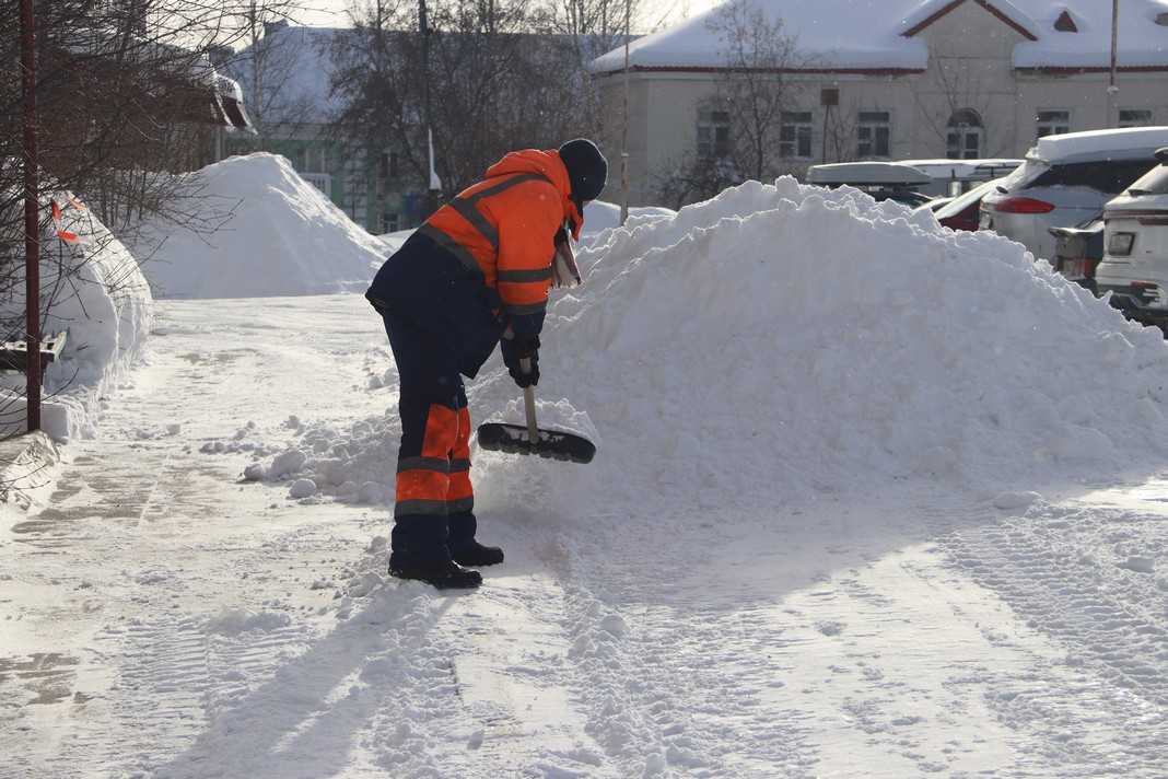 Во дворах первым снег счищается у подъездов, с тротуаров, пешеходных дорожек, потом с проезжих дорог, стоянок автомашин и иных сооружений, расположенных на придомовой территории. В ручной очистке города от снега задействовано более полусотни дворников.