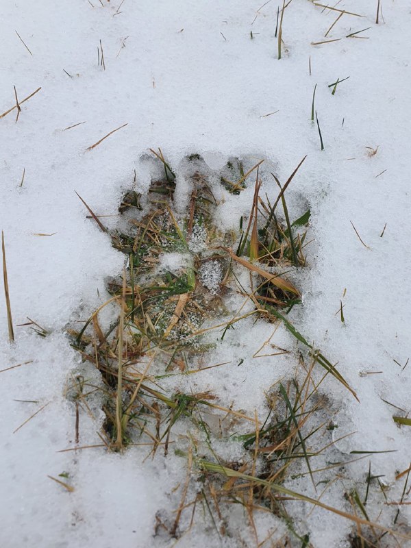 Огромные отпечатки лап дикого зверя заметила Надежда Дудникова на своём участке по адресу – коллективный сад № 42, улица Центральная, 87 в субботу, 6 декабря. Следы чётко проступали на снегу.