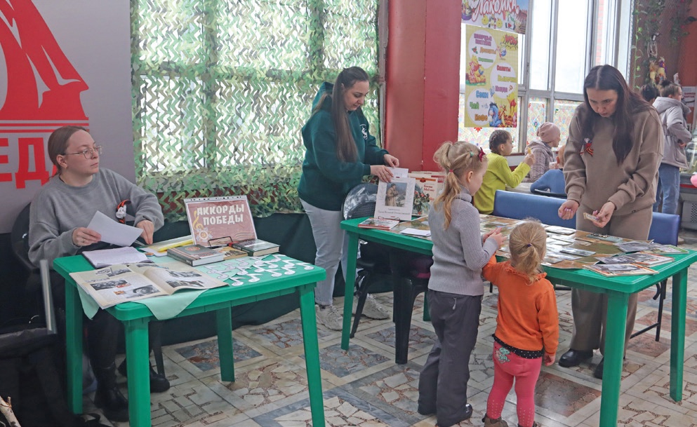 На первом этаже павильона библиотекари «Бажовки» организовали музыкально-познавательную площадку «Аккорды Победы» и интерактивную игру с разными уровнями сложности «История подвига».