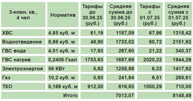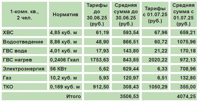 Посчитаем, насколько вырастет квартплата с 1 июля без учёта платы за содержание жилья и капитального ремонта. У каждой квартиры своё потребление коммунальных услуг, поэтому за основу возьмём нормативы на холодное и горячее водоснабжение, водоотведение, электро- и газоснабжение, обращение с твёрдыми коммунальными отходами.