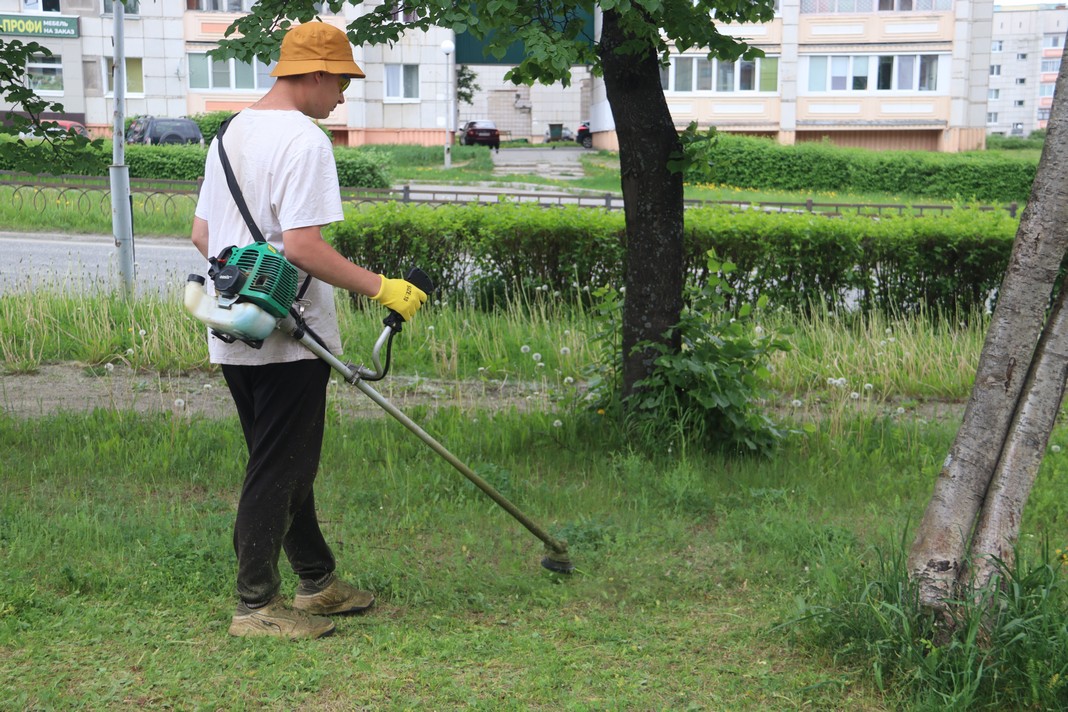 В Лесном началось выкашивание газонов по улицам города, в посёлках Горный и Таёжный.