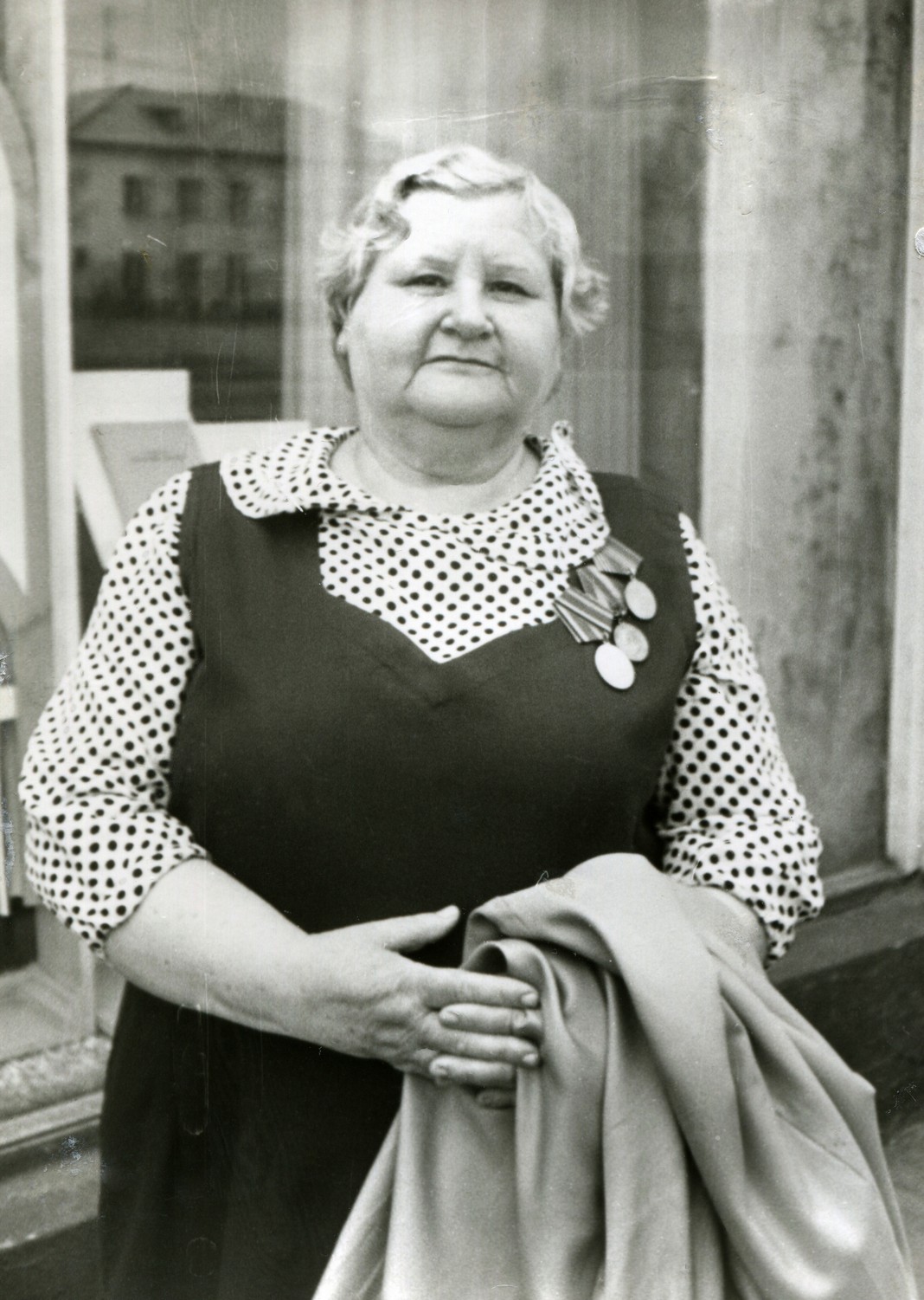 Труженик тыла. С 1941 года и до выхода на пенсию проработала в Томске на Манометровом заводе. Награждена медалью «За доблестный труд в Великой Отечественной войне 1941-1945 гг.».