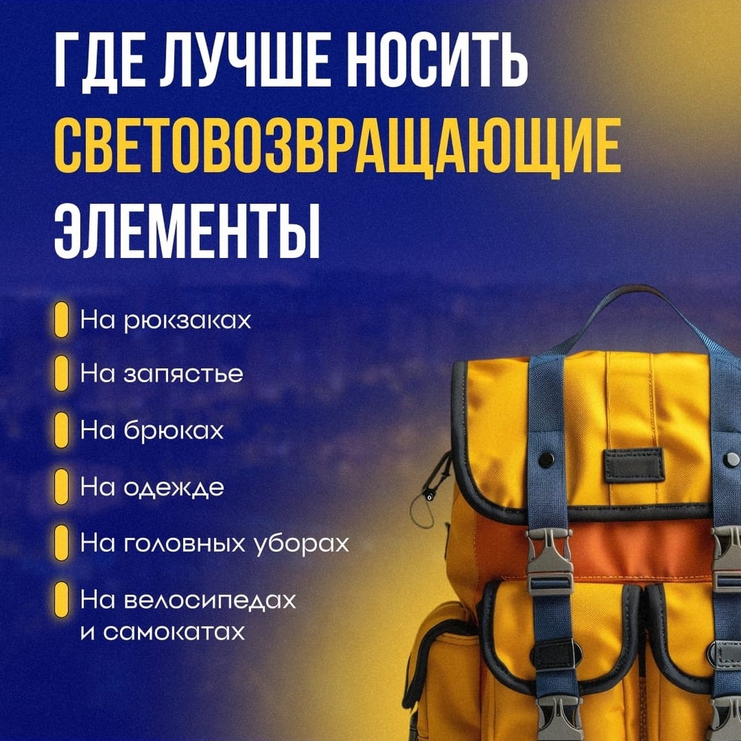 Световозвращающие элементы повышают видимость пешеходов на неосвещённом участке улично-дорожной сети, значительно снижают риск возникновения ДТП: при движении автомобиля с ближним светом фар это расстояние увеличивается до 150-200 метров, а при движении автомобиля с дальним светом фар – до 350 м. Это даёт водителю 15-25 секунд для принятия решения.
