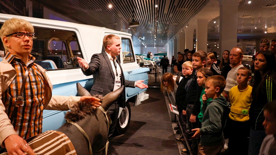 Рано утром победители конкурса рисунков вместе со взрослыми сопровождающими отправились на комфортном автобусе из Лесного в Верхнюю Пышму. После долгого пути детей ждал вкусный обед в кафе музейного комплекса Уральской горно-металлургической компании. Отдохнув после дороги, дети отправились на экскурсию Музея автомобильной техники «ХХ век АВТО». Прекрасно отреставрированные красивые автомобили начала прошлого века, самые яркие и известные машины, в том числе из советских фильмов, отлично сочетаются с историческими иномарками. Например, DeLorean из фильма «Назад в будущее» или современный Tesla Cybertruck.
