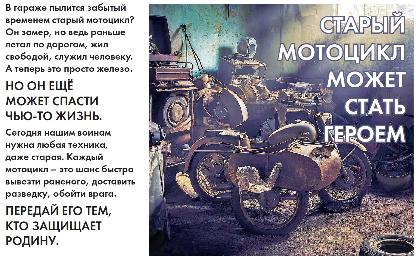 После призыва о приёме подержанных мотоциклов от населения, в том числе и через газету «Вестник», переданы для нужд наших воинов в зоне СВО первые байки: и полностью в исправном состоянии, и на запчасти.