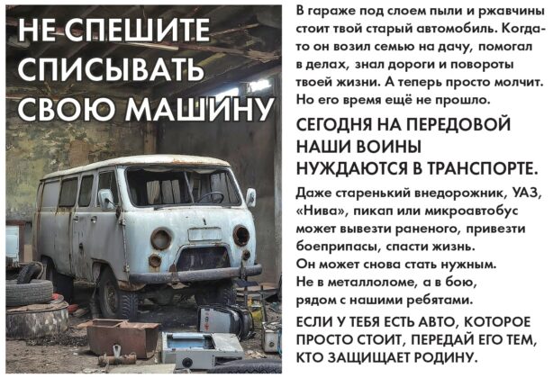 «Проведём технический регламент, модернизируем и – на фронт! – прокомментировал Сергей Булатов, аккумулирующий технику у себя на базе. Сбор продолжается.