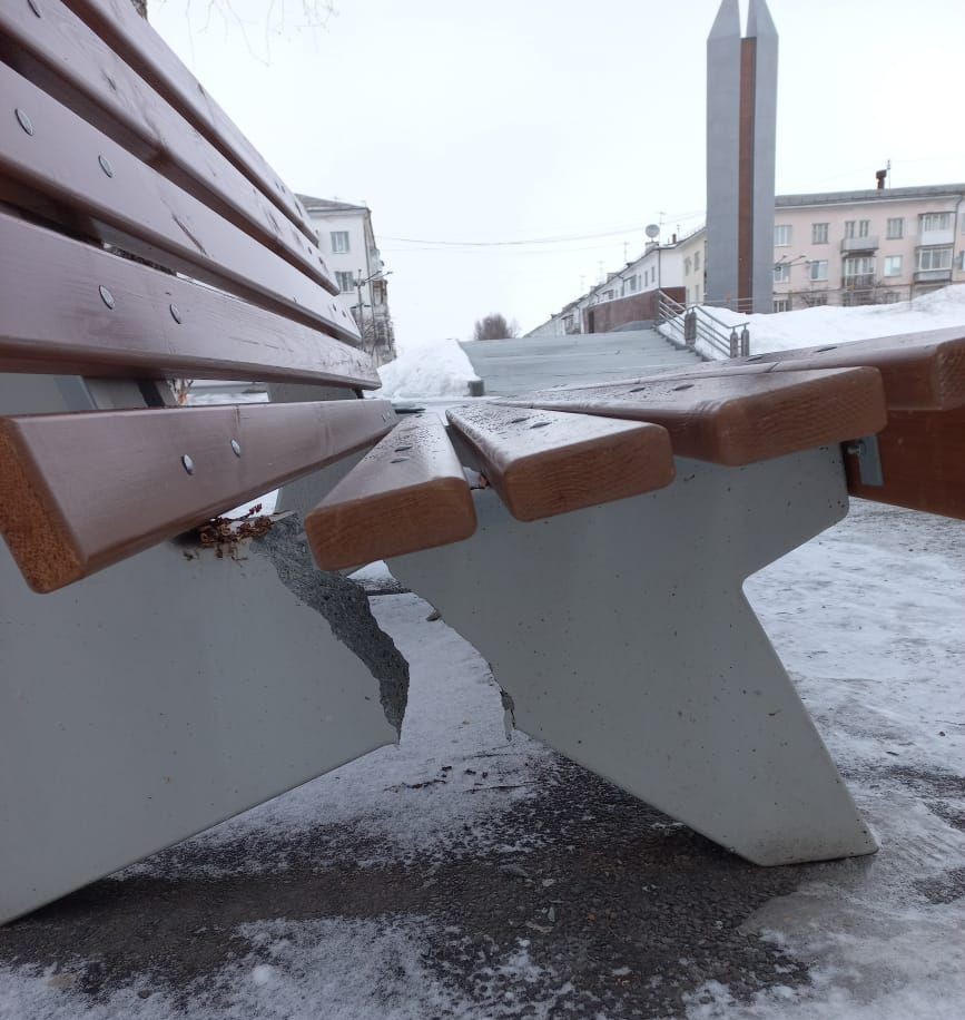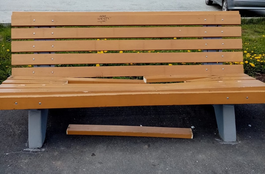 Резвые молодцы сломали лавку по улице Победы, навалились так, что аж бетон раскрошился. А по улицам Васильева и Ленина, по всей видимости, скакали на лавочках так, что доски проломили. Это ж каким разрушительным стремлением нужно обладать! Такую бы энергию да в мирное русло…