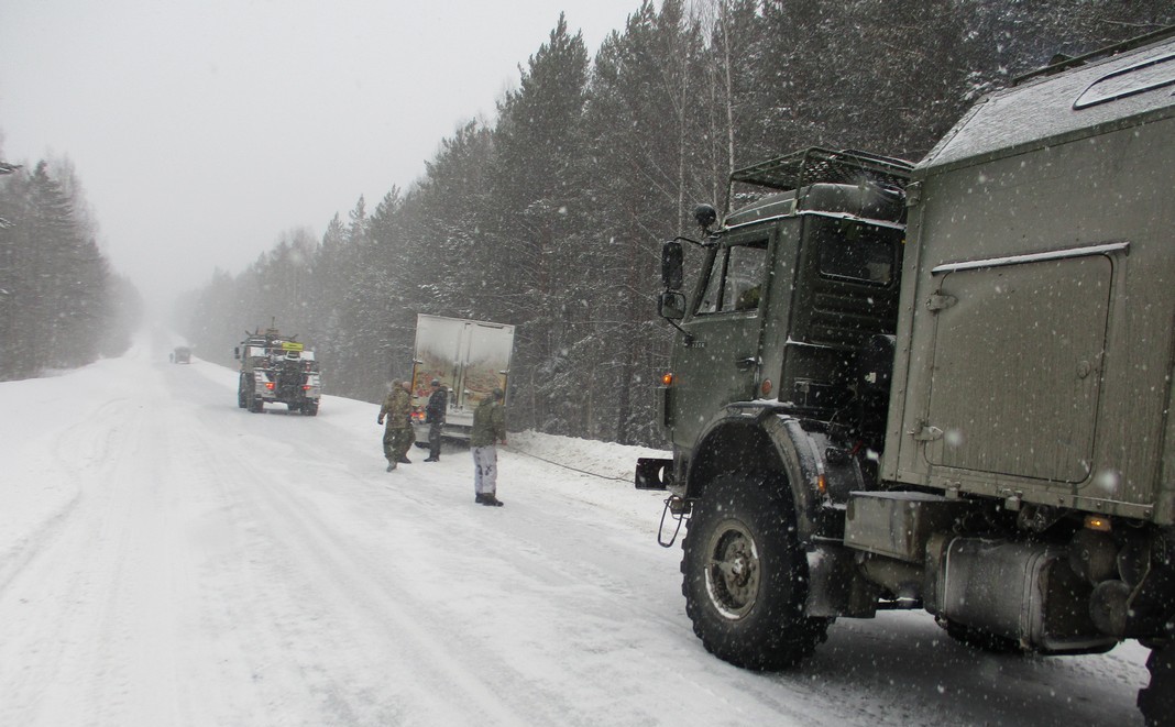 В это время по дороге передвигалась автомобильная колонна одной из воинских частей Минобороны России. Военные водители не оставили гражданского коллегу в беде. При помощи инспекторов ВАИ, обеспечивших безопасность дорожного движения, они организовали освобождение из снежного плена транспортного средства гражданского водителя. Водитель грузовика искренне и от души поблагодарил своих спасителей и продолжил движение.